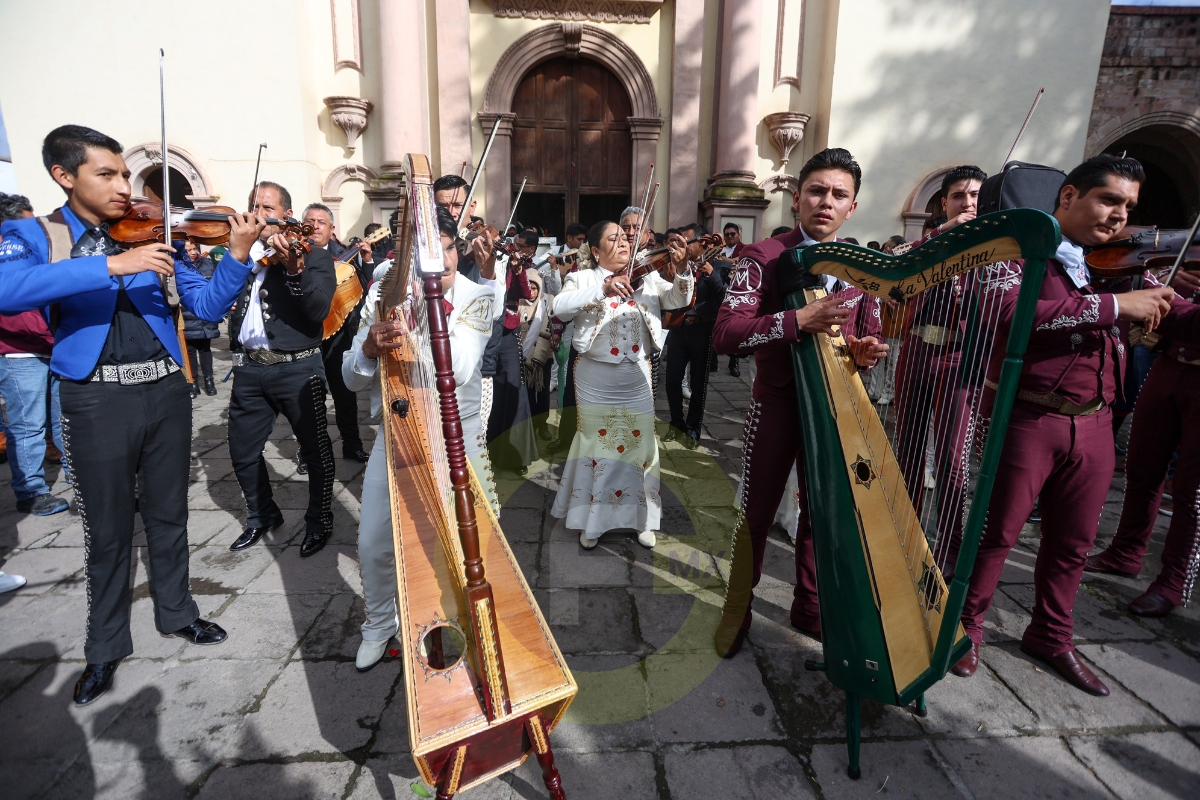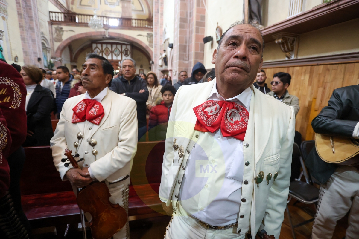 Este miércoles, más de 150 mariachis llegaron a la Parroquia de San Pedro y San Pablo con sus imágenes de más de un metro adornadas con flores frescas. Llegaron tocando y cantando para escuchar misa y bendecir sus instrumentos.