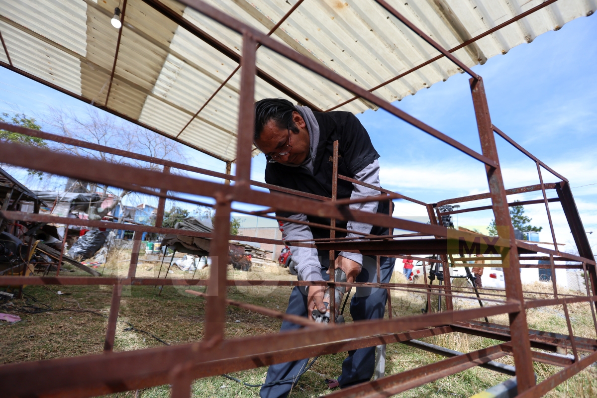 Cuando consigue los fierros y la batería, comienza a darles forma. Son de metal así que, asegura, duran muchos años. El primero que hice continúa intacto, apilado con otros que le han dio pidiendo o bien, conducido por sus hijos.