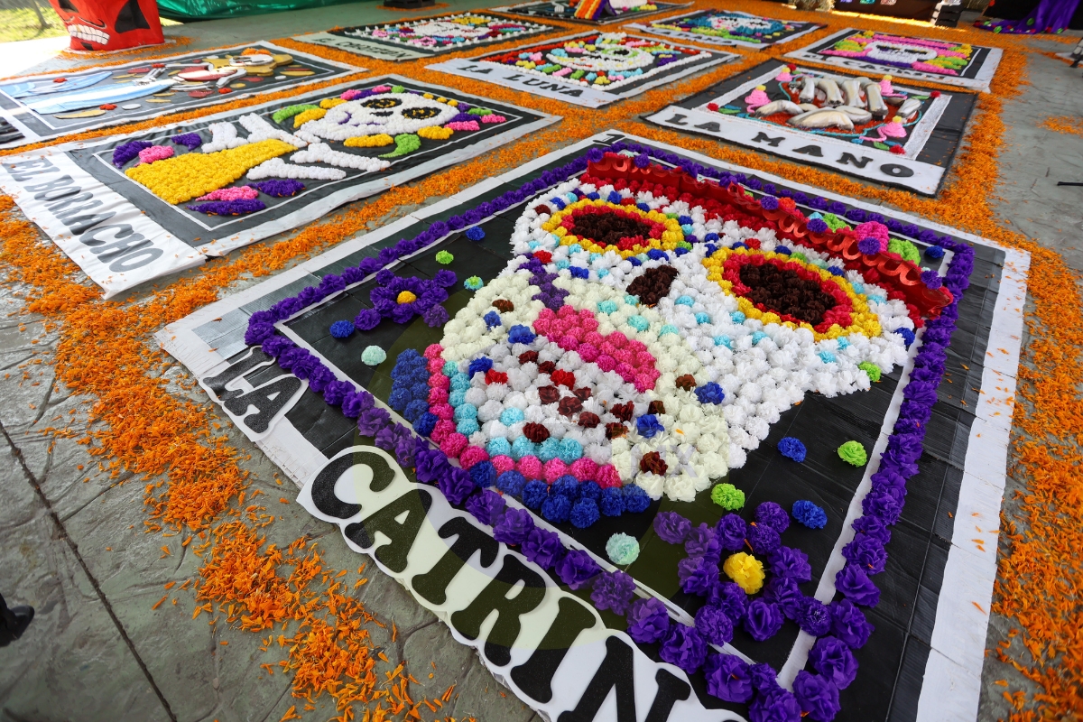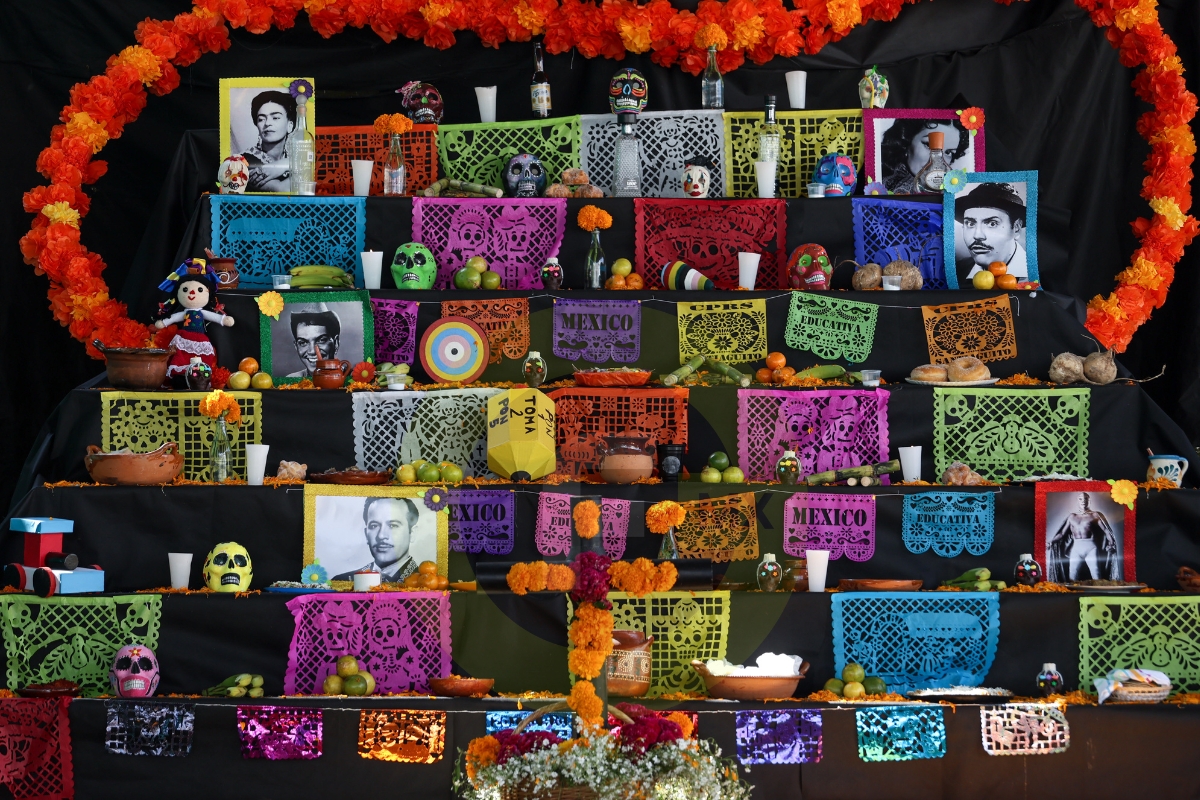 Además, colocaron una ofrenda prehispánica de nueve niveles que representan los niveles del inframundo mexica con platillos, postres, juegos y bebidas tradicionales.