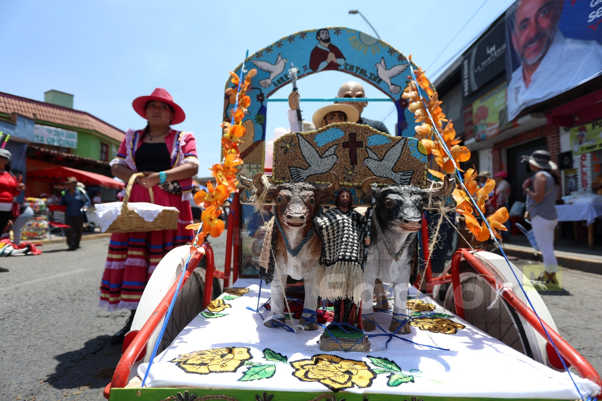 Las yuntas, tractores, imágenes de San Isidro Labrador y mojigangas o tlacualeras se combinan para dar vida a la celebración más emblemática del municipio.
