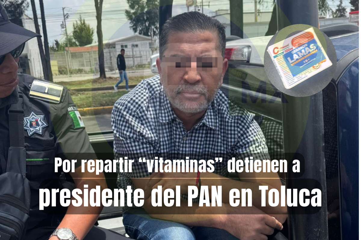 El presidente del Comité Directivo Municipal del Partido Acción Nacional en Toluca fue detenido este miércoles en la zona norte del municipio tras ser denunciado por repartir supuestas vitaminas afuera de un kínder; se trata de Mario Jorge N.