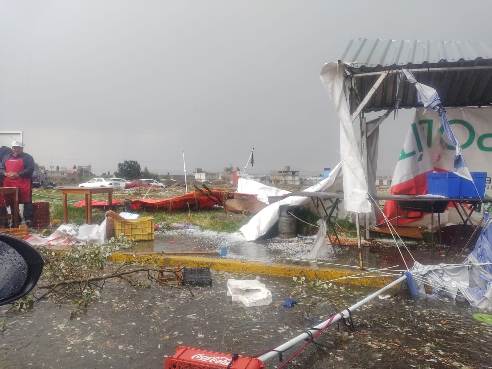 En los ejidos de Santiago Miltepec, el tornado en Toluca provocó el colapso de una bodega y la pérdida de techos de lámina en varias viviendas debido a los fuertes vientos. Protección Civil y Bomberos, junto con la Policía Municipal, se desplegaron en áreas como San Lorenzo Tepatitlán, Santa Cruz Atzcapotzaltongo y Tres Caminos.