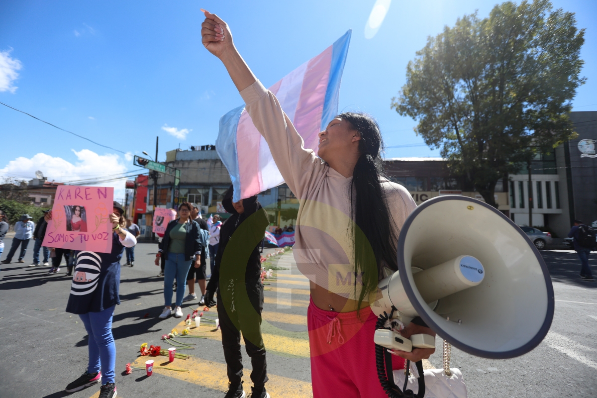 Para presionar a las autoridades a que les provean de respuestas en torno a la carpeta de investigación por el homicidio de Karen, integrantes de distintos colectivos LGBTTTIQA+, como Fuera del Clóset y Realiatrans, bloquearon la avenida Morelos la tarde de este domingo.