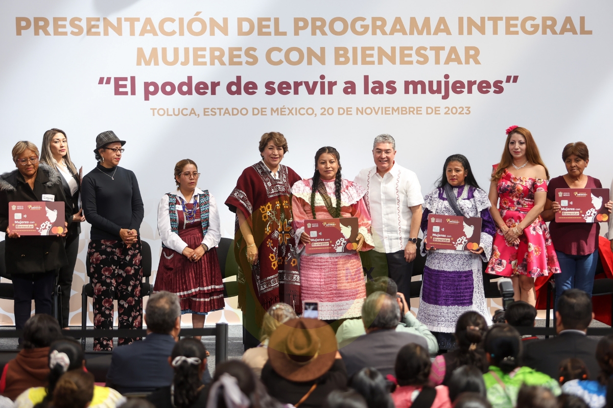 La gobernadora del Estado de México, Delfina Gómez Álvarez, dio el banderazo de arranque al programa integral Mujeres con Bienestar, que reemplaza al Salario Rosa, con el que mujeres en situaciones de vulnerabilidad recibirán 2 mil 500 pesos de manera bimestral.